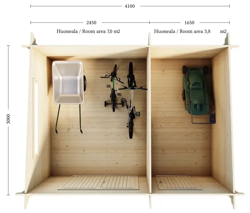 Vinkki: Näet piharakennuksen kuljetuksen hinnan, kun olet lisännyt tuotteen ostoskoriin. Ostoksen jälkeen kuljetusliike ottaa sinuun yhteyttä sopiakseen toimitusajasta. Voit antaa tilauksen yhteydessä vielä lisätietoja ja ohjeita toimitusta varten.