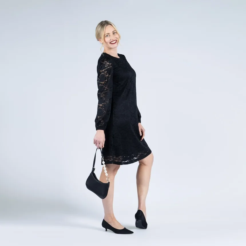Musta mekko on varma valinta juhliin kuin juhliin. Hän valitsi itselleen pikkujoulumekoksi mustan mekon, joka istuu hyvin ja jossa on näyttävät hihat kiinnostavana yksityiskohtana.