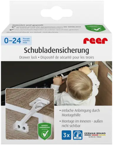 Reer lapsilukko laatikkoon ja oveen 3 kpl valkoinen
