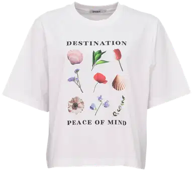 Tuotteesta on 1 värivaihtoehtoaGarden by Uhana naisten Daisy Boxy T-paita, etu printillä peace of mind