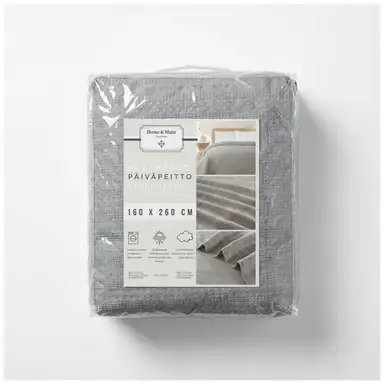 Home & Main päiväpeitto WaffleJacq 160x260 cm vaaleanharmaa