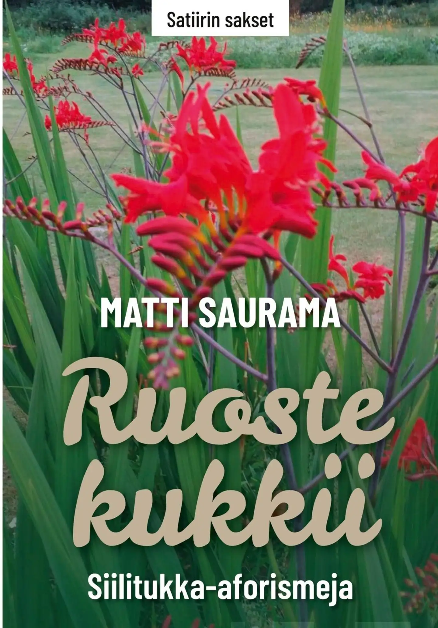 "Aforismissa ajatus on sanavalmis". RUOSTE KUKKII -teoksen aforismit ovat kertymää esikoiskokoelmasta AJATELLA, AFORISMEJA! sekä aivan uudemmasta tuotannosta. "Ennen kuin kaikki lopulta seisahtuu, on vielä kiire lisätä hitautta." Kokoelman aforismeissa on sekä perinteistä tavarajunamallia että tiukan keskitetystä laveammalle kurkottavia mietelmiä, joka sekin toki viittaa kohti perinteikästä tyyliä. Runollisuus istuu sille tilaa antavaan aforismiin vaivatta, "Väsyttää, sanoi uni aamulla. " Proosamuoto taas on kotonaan pitempää aforistista muotoa ja toisaalta lyhyesti toteavampaa ilmaisua tavoiteltaessa. "Koti, eteisen matto kävi lattialle pitkäkseen." Tehokeinona Sauraman etenkin lyhykäisistä, sähikäismallisista aforismeista pistää esiin siilimäinen piikikkyys: "Ilkeys on mielen lakmus-liuos." Terävä satiiri on ollut yleisesti hallitseva tyylikeino lajin ensi askelista lähtien. "Korokkeelta ääni näkyy kauemmas." Aforistisen ympäristön voi jokainen nähdä kaikkialla ympärillään päivin öin: "Aforismi on tähti tummalla yötaivaalla." Aforismeja lukiessa ymmärtää hyvinkin, että "Kirjaimilla on väliä, koska ne ovat peräkkäin."