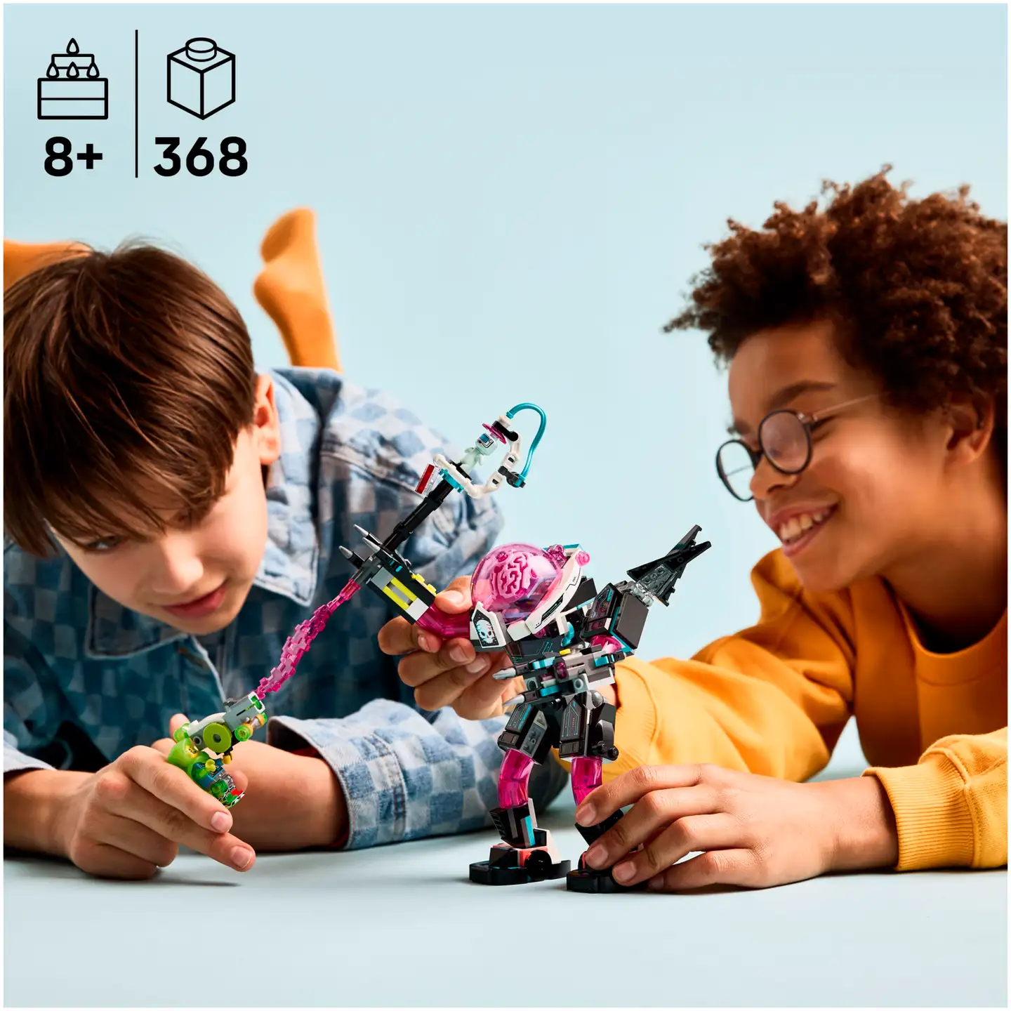 Päästä mielikuvitus lentoon tällä jännittävällä LEGO® DREAMZzz™ Mateo vastaan kyberälykkörobotti (71495) rakennussetillä. 8 vuotta täyttäneille lapsille sopiva setti vie 2 rakennusseikkailuun, ja sen avulla pojat ja tytöt voivat lyöttäytyä yhteen Mateon kanssa pelastaakseen viattoman uniolennon kyberälyköltä. Nuoret uneksijat rakentavat ensin hauskan värikkään kapselin, jonka he voivat muuttaa kyberälykkö-robottileluksi tai kyberälykkö-skorpionirobottileluksi. Upeita yksityiskohtia pursuava robottilelusetti sisältää nuppipyssyjä, limatykin, avattavan ohjaamon ja asemoduuleja, jotka ovat yhteensopivia muiden vuoden 2025 LEGO DREAMZzz kokoelman settien kanssa (myydään erikseen). Mateo-minihahmo, joka käyttää Z-Blobia suojaavana viittanaan, sekä uniolentohahmo herättävät setin eloon ja innostavat mielikuvituksellisiin roolileikkeihin. Tämä rakennussetti on mahtava lahja pojille ja tytöille. Se sisältää tarinalliset rakennusohjeet, joiden avulla lapset voivat uppoutua seikkailuun ja ryhtyä Unimaailman sankareiksi.